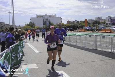 La parte final también se hace dura, porque al llegar al parking mentalmente crees que ya has acabado, pero queda atravesar todo la extensión del aparcamiento completa. Me sale rápido pero ya bastante asfixiadillo. Pepe para unos instantes y reduce su marcha porque va a entrar de la mano de su hijo, por lo que finalmente llego un poco por delante de él.